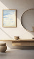 Dette minimalistiske trykket viser myke blåtoner og off-white fargetoner, som fanger den rolige skjønnheten til en åpen himmel. Subtile toner og naturlig tekstur skaper en fredelig og luftig følelse, perfekt for moderne og skandinavisk interiør.