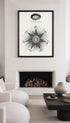 Plakat med et symbolsk diagram i vintage-stil i svarte og elfenbensfargede toner. Designet har en sentral stjerne omgitt av fine linjer, geometriske former og subtile markeringer inspirert av gamle diagrammer og manuskripter. Et balansert og detaljert trykk som gir rommet en rolig og gjennomtenkt følelse. Fungerer godt i arbeidsrom, oppholdsrom eller moderne interiører som liker klassiske detaljer.