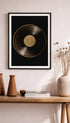 Denne plakaten viser en vinylplate i perfekt symmetri, med fremheving av sporene og den sirkulære formen. Et stilig og enkelt møbel som hyller musikken og gir rommet ditt et moderne og elegant preg.