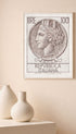 This poster features a vintage Italian stamp with a classic profile portrait in soft sepia tones. Fine linework and historic typography give it a timeless, elegant look. Perfect for adding subtle European charm and vintage character to your walls.