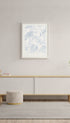 Delicate botanical shapes in airy blue shades create a calm, modern look. The subtle watercolor effect adds lightness and serenity, making it perfect for minimalist, Scandinavian, or light-filled interiors.