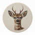 Fine brown and cream threads are stitched in short, fur-like layers to build this sweet deer face, with smooth satin details for the eyes and nose on artisanal hand-woven cotton.
