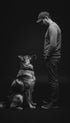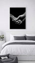 Minimalist black and white art print showing a human hand holding a dog’s paw. The poster features clean lines and a striking contrast against a deep black background, emphasizing unity and loyalty. Printed on premium matte paper, this artwork adds warmth and meaning to any space, whether displayed in a living room, hallway, or home office.