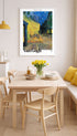 Van Gogh’s Café Terrace at Night shows a glowing evening scene in Arles, with warm café lights spilling onto the cobblestone street under a deep blue sky. The bold colors and lively brushstrokes bring the night to life. A beautiful way to add warmth and artistic charm to any room.
