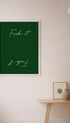 Handwritten “Fuck it” text on a deep green background. A bold, playful reminder to let go and keep it simple. Printed on premium matte paper for a clean, modern look—perfect for living rooms, offices, or creative spaces.