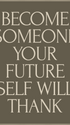 Minimalist typography poster with the quote “Become someone your future self will thank.”