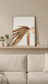 A calm and elegant palm leaf print in soft golden shades on a neutral background. The simple design and clean lines make it easy to style in modern homes. A timeless botanical poster that works well in living rooms, bedrooms, or offices, and pairs beautifully with other minimalist art prints.