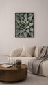 A close-up of a succulent showing perfect symmetry and natural geometry. Deep greens with soft white striping create texture and calm, making it a serene focal point for your wall. Perfect for modern, minimalist, or nature-inspired spaces.