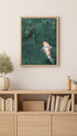 A calming print showing koi gliding through emerald waters, creating gentle ripples and soft reflections. Perfect for adding a touch of tranquility to living rooms, offices, or meditation spaces.