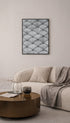Minimalist abstract poster with a soothing scalloped pattern in soft grey and charcoal