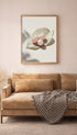A delicate composition of blush-toned pearls on a dried leaf, highlighted by gentle natural light. Soft pastels and subtle textures create a calm, minimalist artwork that adds warmth and sophistication to any room. Perfect for bedrooms or living spaces with modern, Scandinavian, or Japandi décor.