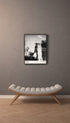 Black and white street photo capturing a fleeting reflection on a rain-soaked street. The passing figure and soft contrasts create a calm, cinematic feel. Perfect for modern, industrial, or Scandinavian interiors.