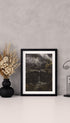 Poster of a cascading waterfall surrounded by fog and rocky landscape. The deep shadows and muted earthy colors give it a calm and slightly dramatic feel. A simple and elegant print that brings a quiet mood to your wall. Perfect to pair with other nature posters for a soft, balanced gallery wall.