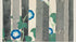 Japanese woodblock poster of blue blossoms climbing through bamboo.