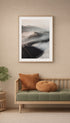 Minimalist poster featuring soft, layered mountains wrapped in gentle mist. Calm beige and grey tones create a peaceful and airy feel, perfect for modern and Nordic-style interiors. A quiet landscape print that brings depth, balance, and a sense of stillness to your space.
