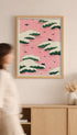 This art print features Pink Sky by Watanabe Seitei, a refined Japanese composition with bold simplicity and calm space. Soft blush gradients meet deep green cloud forms, while scattered bird silhouettes add quiet movement and a dreamy sense of scale. Minimal yet expressive, this Japanese wall art brings serenity, color, and a contemporary Japandi feel to your wall decor. Perfect for minimalist, Scandinavian, and Japandi interiors.