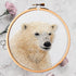 Are you looking for a unique animal print? Our Polar Bear Embroidery Design for you to upgrade your home interior! Decorate using wall art that shows your love for animals and the outdoors. This hand embroidery pattern shows a close-up of a calm polar bear. We use many shades of white, cream, and tan to make the fur look real. It adds a cozy and soft feel to any room. Additionally, we offer these designs in a high‑quality wooden embroidery hoop that goes perfectly with the art.