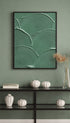 This contemporary print features overlapping circular forms with fine, tactile lines, creating a rhythmic and organic pattern. Soft matte greens bring calm and subtle color to any space. Perfect for modern, minimalist, or nature-inspired interiors. Adds a natural, serene touch to living rooms, bedrooms, or studios.