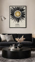 Art print with a glowing golden circle in the center and bold black rays spreading outward. The contrast between gold and black creates a sense of movement and energy. The design represents strength, vitality, and light, giving the poster a modern yet timeless look. Perfect for contemporary interiors, creative spaces, or gallery walls, this poster adds a touch of drama and sophistication.