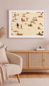 This elevated coastal photograph captures the relaxed rhythm of Bondi Beach, Australia, tiny figures stretched out on towels, small groups chatting, and wide open sand that feels almost abstract from above. It brings instant holiday energy and airy brightness to living rooms, bedrooms, studios, and beach-inspired interiors. The high-key light and minimal color pops create a clean, editorial look that’s perfect for modern homes.