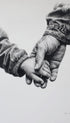 Black and white print of two hands gently clasped together, symbolizing strength, protection and trust. The motif shows a larger hand and a smaller hand in detailed realism. Minimalist yet full of meaning, this poster print makes a heartfelt addition to family homes, nurseries or as a thoughtful gift. Its monochrome palette ensures it blends seamlessly with Scandinavian interiors, modern décor or gallery wall collections.