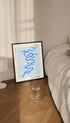 This poster features a single blue line that gently winds across a soft, pale background, creating a calm and reflective mood. Handwritten text adds a poetic touch. Perfect for living rooms, bedrooms, or any space that welcomes simplicity and quiet beauty.