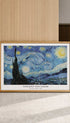 Painted by Vincent van Gogh (1889), The Starry Night turns the quiet of evening into pure energy, spiraling clouds, glowing stars, and a luminous moon set against deep cobalt tones. The dark cypress rises like a silhouette in the foreground, grounding the scene while the sky dances above the village. It’s bold, timeless, and instantly elevates any wall with museum-level presence.