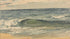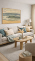 Calm seascape poster in soft watercolor tones. Gentle waves meet the sandy shore under a muted pastel sky. Perfect for adding a peaceful, sun-washed touch to your home.
