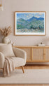 Painted in 1884, Claude Monet’s Valle Buona, Near Bordighera reflects the artist’s fascination with the intense light and rich vegetation of the Italian Riviera. Hints of small buildings and a warm-toned hillside add depth without interrupting the softness of the atmosphere. The palette is especially delicate here—lavender, mint, sky blue, soft cream, and touches of peach, giving the painting an airy, almost shimmering quality. It feels less like a fixed view and more like a moment of light passing over the landscape.