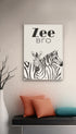 Monochrome zebras with striking stripes create a graphic, modern look. A perfect mix of wildlife energy and clean design. Perfect for Scandinavian or minimalist interiors, monochrome décor, statement walls.