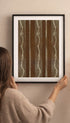 Grafisk konst med en klassisk blå kupol och ljusa bougainvilleablommor som inramar en beige arkitektur. Postern sitter på en ren beige bakgrund med skarpa linjer och balanserat negativt utrymme, vilket skapar en lugn, minimalistisk känsla. Ger en touch av reslust och ljus kustnära elegans till vardagsrum, sovrum eller kontor.